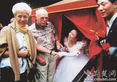 一家民居客棧內(nèi),美國攝影師約翰·雅格與相戀十多年的日本女朋友在嗩吶聲的祝福中,共拜天地……