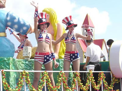 今天上午在新海廣場舉行的第六屆大連狂歡節(jié),更是使歡樂的海洋里掀起了歡樂的海潮。來自國內(nèi)外的24支狂歡巡游隊伍,以花團錦簇的民族服裝和極度夸張的藝術(shù)手法,演繹了航天、花神、特洛伊木馬、梁山伯與祝英臺、孔雀仙子、海底動物、蝴蝶服飾、阿凡提、醉酒、美人魚、回娘家、貓友、豪華游覽馬車、日月潭傳說、堂吉訶德、木偶奇遇、狐假虎威、寶蓮燈、海娃與王子、小櫻丸子、尼爾斯騎鵝記、阿里巴巴、輪滑表演等國內(nèi)外著名童話,電影故事等。最為耀眼的是以音樂劇《貓》的扮相出場的表演隊伍,他們獨特的表演和造型贏得了在場觀眾最多的歡呼聲?駳g的服裝藝術(shù)巡游,吸引了數(shù)萬國內(nèi)外游客和當?shù)孛癖姷挠^賞。