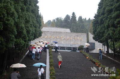 當(dāng)日下午,采訪團(tuán)一行來(lái)到了井岡山革命烈士陵園。園區(qū)位于茨坪北面的北巖峰上。抵達(dá)目的地后,首先映入眼簾的是“井岡山革命烈士陵園”九個(gè)燙金大字,據(jù)介紹,這幾個(gè)字是參加過(guò)井岡山斗爭(zhēng)的老紅軍宋任窮同志題寫(xiě)的。