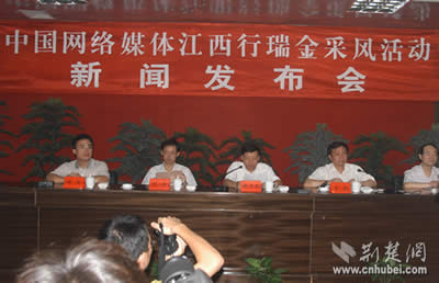 荊楚網(wǎng)消息 記者姚啟慧報道:12日晚,第二屆中國網(wǎng)絡媒體江西行采訪團抵達共和國搖籃瑞金。13日上午,瑞金市舉行隆重的記者招待會,瑞金市委書記肖毅親自向采訪團記者推介紅色故都瑞金,市長楊中茂主持會議。