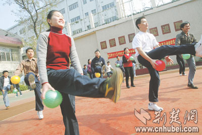 荊楚網(wǎng)(楚天都市報(bào))(記者潘勤實(shí)習(xí)生黃進(jìn) 蕭顥)昨日,江漢區(qū)民意街的晨練居民一大早就走進(jìn)了武漢市七十五中的校園,大家在操場(chǎng)上打拳、跳操、踢球,玩得不亦樂乎。
