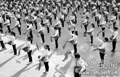 昨日,武漢市石喬口區(qū)輕汽小學(xué)學(xué)生在大課間進(jìn)行腰鼓訓(xùn)練(下圖)。為保障農(nóng)民工子女順利入學(xué)就讀,該區(qū)投資1000多萬元改善全區(qū)農(nóng)民工子女學(xué)校的辦學(xué)條件,通過設(shè)立助學(xué)金、減免學(xué)雜費(fèi)等形式,幫助20078名農(nóng)民工子女順利入學(xué)就讀(右圖)。(記者張鴻 通訊員楊斌 周浩攝)