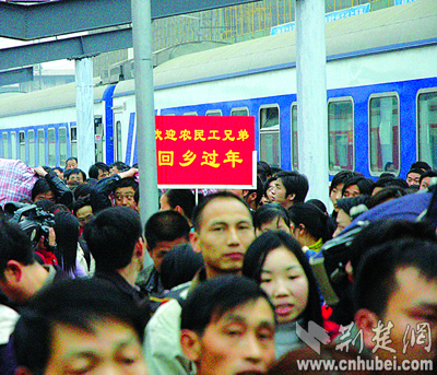 農(nóng)民工乘專列回到武漢