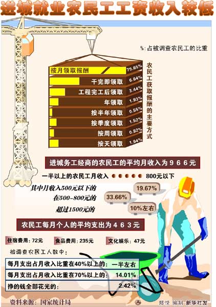 進城就業(yè)農民工工資收入較低(圖)
