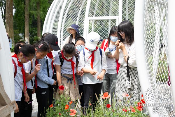 在武漢植物園本草園的西側(cè)的活體罌粟展示區(qū),五個白色的罌粟果實(shí)狀籠子格外顯眼?;顒蝇F(xiàn)場,湖北省禁毒委員會、武漢植物園和梅苑學(xué)校師生代表一起為活體罌粟展示區(qū)改造工程揭幕,標(biāo)志著武漢植物園禁毒科普教育基地重新開園。