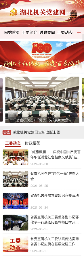 荊楚網(wǎng)(湖北日報網(wǎng))訊(記者謝頤 通訊員鄭羽嬋)在中國共產(chǎn)黨成立100周年之際,湖北機關(guān)黨建門戶網(wǎng)站湖北機關(guān)黨建網(wǎng)(http://www.hbjgdj.gov.cn/)電腦端、移動端全新改版上線。這是省委直屬機關(guān)工委積極探索智慧黨建的有效途徑,是加強省直機關(guān)黨建宣傳工作的重要舉措,是為黨慶生、為黨祝福獻上的特殊禮物。