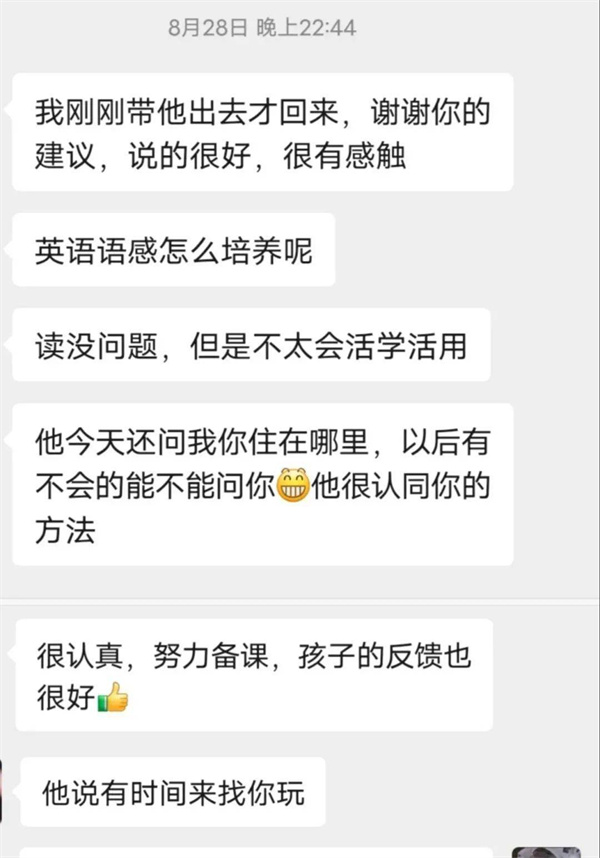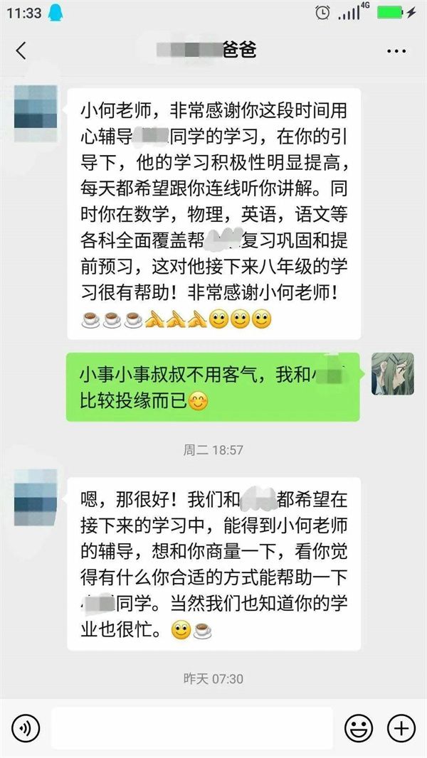 2021年的第一次線上志愿輔導(dǎo)在我的激動(dòng)、欣喜、緊張交錯(cuò)之中開(kāi)始了。第一步也是最重要的一步:和家長(zhǎng)進(jìn)行交流與溝通。說(shuō)實(shí)話,我的心里還是非常忐忑的:害怕家長(zhǎng)不回復(fù)消息,害怕不能很好地了解小朋友的學(xué)習(xí)狀況。但其實(shí)邁出溝通的第一步之后,后面的對(duì)話就很自然了,并沒(méi)有想象中的那么困難和緊張。而且很幸運(yùn)的是,家長(zhǎng)很配合我們的輔導(dǎo)活動(dòng),我的心里瞬間就放松了不少,自信心也莫名大增!被叫老師,真是很久違的感覺(jué),令我成就感倍增,獲得了家長(zhǎng)的稱贊也讓我很開(kāi)心。而我本身也很喜歡數(shù)學(xué),希望我的興趣可以感染到小朋友,讓她也能喜歡數(shù)學(xué)。也希望通過(guò)基本的閱讀寫作教學(xué),讓她能夠提升自己。