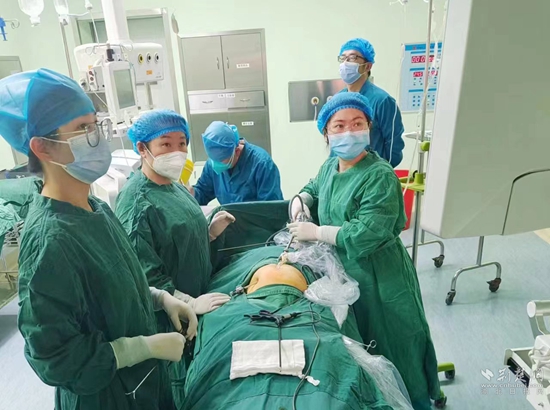 婦科主任張輝立即要求科室開放綠色通道積極組織搶救。護(hù)理團(tuán)隊快速精準(zhǔn)地開放兩條靜脈通道,張輝簡要了解患者病史及檢查資料后明確診斷:異位妊娠,腹腔內(nèi)大出血,失血性休克,指示立即將患者轉(zhuǎn)運手術(shù)室急診手術(shù)。