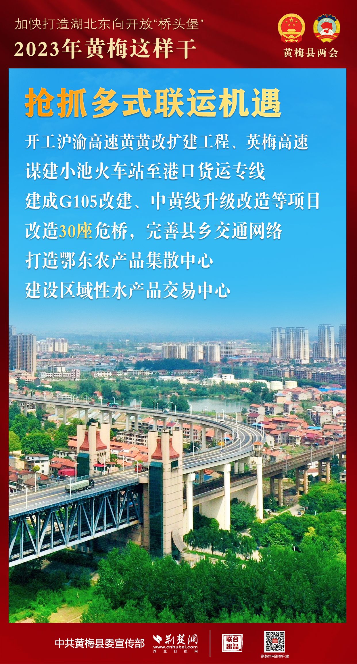 2023年,黃梅將搶抓六大機(jī)遇,提升六個能級,著力發(fā)展節(jié)點(diǎn)、旅游、樞紐、平臺“四大經(jīng)濟(jì)”,敢為實干,提速增效,全面向上,加快著力打造湖北東向開放“橋頭堡”。