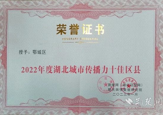 《2022年度湖北城市傳播力十佳區(qū)縣》證書(shū)。通訊員 供圖