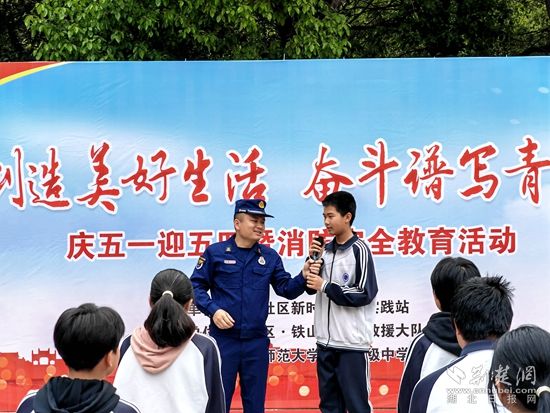 在消防小知識(shí)有獎(jiǎng)競答環(huán)節(jié),學(xué)生們踴躍回答問題,紛紛展示學(xué)到的消防知識(shí),現(xiàn)場(chǎng)氣氛一片火熱,為了增強(qiáng)互動(dòng)效果,宣傳員利用消防宣傳車播放了生動(dòng)有趣的消防安全知識(shí)短片,并講解了滅火器、逃生面罩等消防器材及產(chǎn)品的使用方法和注意事項(xiàng),吸引了學(xué)生們觀看和學(xué)習(xí)。