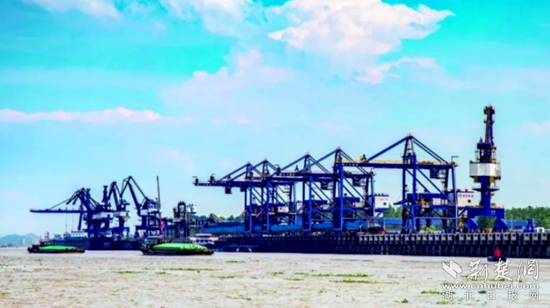 與此同時(shí),綠色始終是黃石新港園區(qū)的底色。例如,2018年,大冶有色投資1.2億元,在棋盤洲黃石新港園區(qū)建新碼頭。新碼頭采用最嚴(yán)格的環(huán)保標(biāo)準(zhǔn),年吞吐能力210萬(wàn)噸,運(yùn)輸船只眾多。