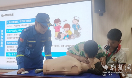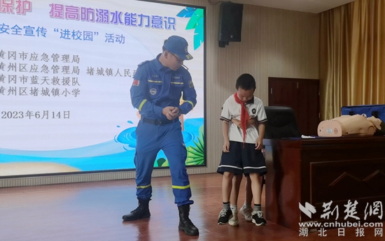 走進(jìn)堵城小學(xué),來自黃岡市藍(lán)天救援隊(duì)的專業(yè)講師正向同學(xué)們宣傳防溺水安全知識(shí),對(duì)突發(fā)溺水應(yīng)急處置、心肺復(fù)蘇術(shù)等自救互救技能進(jìn)行了演示。