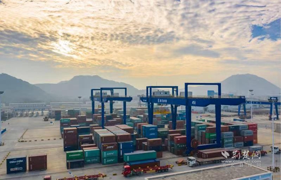 每天,大量的集裝箱從港口進出,是富池鎮(zhèn)經(jīng)濟發(fā)展的“晴雨表”。 通訊員 黃玉 供圖