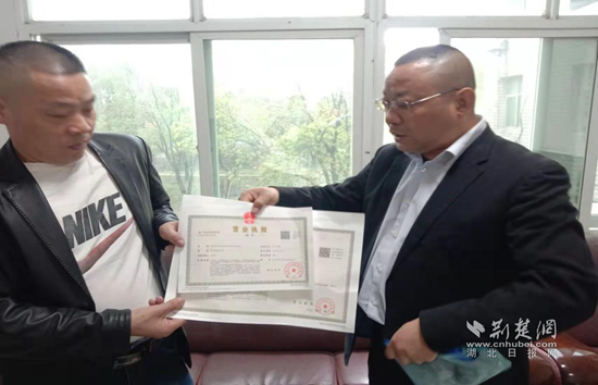 營業(yè)執(zhí)照送到老板手上。 通訊員 黃玉 供圖