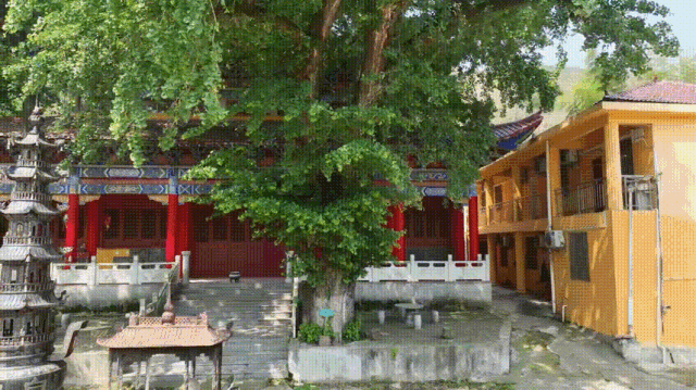 寺廟前庭的古銀杏樹