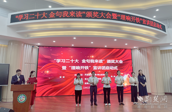 荊楚網(wǎng)(湖北日報(bào)網(wǎng))訊(記者 呂鑒蕾 通訊員 張燦華 胡娜)7月13日上午,黃石開發(fā)區(qū)·鐵山區(qū)“學(xué)習(xí)二十大 金句我來讀”頒獎大會暨“理響開鐵”宣講團(tuán)啟動式在黃金山第五小學(xué)舉行。