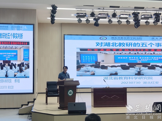 會(huì)上,湖北省教育科學(xué)研究院副院長(zhǎng)傅華強(qiáng)作了題為《對(duì)湖北教研的五個(gè)事實(shí)判斷》的講座。