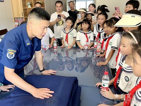 當(dāng)天,來(lái)自白馬山小學(xué)和有色小學(xué)的150余名小朋友帶著好奇、帶著期待走進(jìn)黃石市下陸區(qū)消防救援大隊(duì),與消防員叔叔零距離接觸,學(xué)習(xí)消防知識(shí),感受消防魅力。