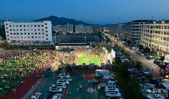 球員揮汗拼搏,群眾吶喊助威。本土的舞動青春舞蹈隊帶來的籃球啦啦操《紅日》,氛圍感拉滿;拆盲盒游戲環(huán)節(jié),茶油、瓜果、雪花粑、天堂寨門票等“接地氣”的特色獎品吸引現(xiàn)場觀眾踴躍參加;當《海闊天空》熟悉的旋律響起時,全場手機閃光燈隨著節(jié)奏舞動,齊聲合唱,瞬間將現(xiàn)場的氣氛帶到了高潮,天空中燃起璀璨的煙花,燃爆匡河夏日夜。