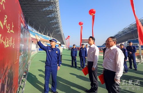 在啟動儀式現場,同步舉辦改革轉隸五周年紀念成果展,該展覽通過系列展板和攝影作品,反映黃岡市消防救援隊伍五年來黨建隊建和消防救援事業(yè)邁向高質量發(fā)展的嶄新氣象。
