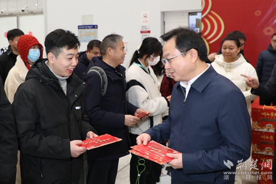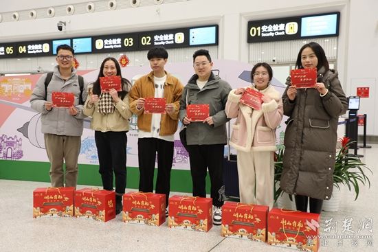 “感謝大家一年來(lái)為鄂州發(fā)展作出的貢獻(xiàn),這次通過(guò)免費(fèi)送建設(shè)者返鄉(xiāng)等多種舉措,希望能讓大家感受到鄂州這座城市的溫度。”在機(jī)場(chǎng)航站樓一樓大廳,湖北省總工會(huì)領(lǐng)導(dǎo)及鄂州市領(lǐng)導(dǎo)向外來(lái)務(wù)工人員代表贈(zèng)送裝有鄂州特產(chǎn)的年貨禮包,并致以誠(chéng)摯美好的新春祝福。