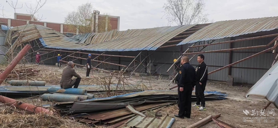 宏博服飾樓頂1200平方米違建鋼架棚拆除。通訊員 供圖