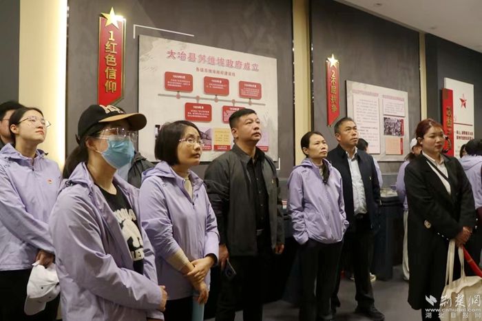 在殷祖南山頭革命紀(jì)念館廣場(chǎng),大家重溫入黨誓詞;在南山頭革命紀(jì)念碑前,大家默哀鞠躬、敬獻(xiàn)花籃,緬懷革命先烈;在鄂東南紅色紀(jì)念館,大家認(rèn)真聆聽紅色故事、看先烈艱苦卓絕的足跡,緬懷他們的豐功偉績(jī);在江南農(nóng)耕文化展覽館感嘆幸福生活來之不易;在沼山村感受美好環(huán)境與幸福生活的共同締造。