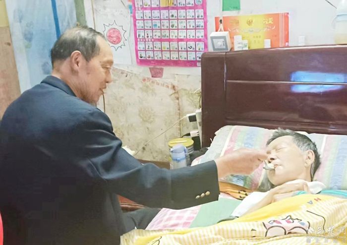 雖然形勢不樂觀,但尤國才仍舊在積極努力著,數(shù)十年來的活絡按摩、運動康復護理,尤國才從未有過一句怨言,“只要妻子在,家在,幸福就在。每天回家能夠看到她,我就覺得家是完整的?!币恢敝沃葒诺模欠蚱拗g相濡以沫的感情,也是作為一名退伍軍人的責任與擔當。