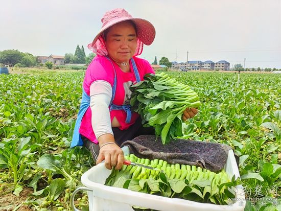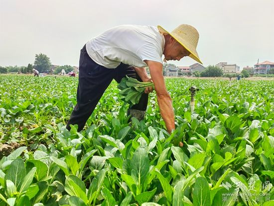 在黃梅縣分路鎮(zhèn)鼎旺農(nóng)業(yè)農(nóng)民專業(yè)合作社廣東菜心種植基地,近100名割菜工手戴指甲刀,在技術(shù)顧問呂美標的指揮下,分散到各個地塊,不一會兒,路兩旁就整齊堆滿了菜心,合作社社長石成旺拿出手機聯(lián)系車輛,經(jīng)過整理、清洗,剛收割的菜心就被送到凍庫,準備第二天運往國內(nèi)外。