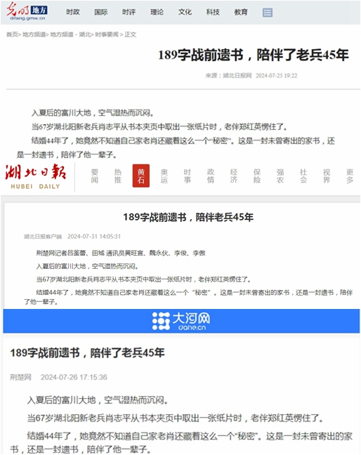 連日來,《189字戰(zhàn)前遺書,陪伴了老兵45年》的故事也在不斷升溫,獲得省內(nèi)外多家媒體密集關(guān)注。