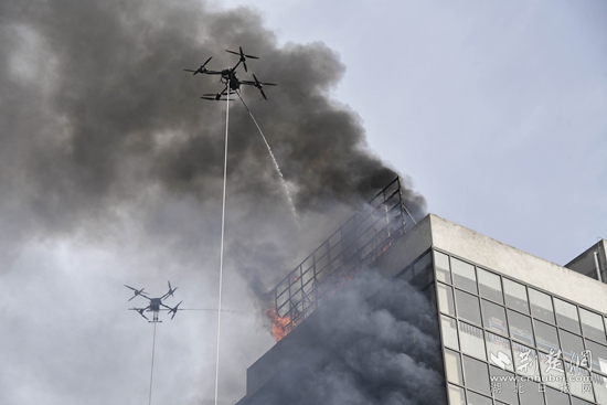 在滅火救援過(guò)程中,黃石消防首次設(shè)置無(wú)人機(jī)滅火科目,配合云梯車(chē)人員疏散、火場(chǎng)緊急避險(xiǎn)、高層供水、內(nèi)部攻堅(jiān)等實(shí)戰(zhàn)化內(nèi)容,向參會(huì)人員展示了黃石市消防救援隊(duì)伍建設(shè)成效。