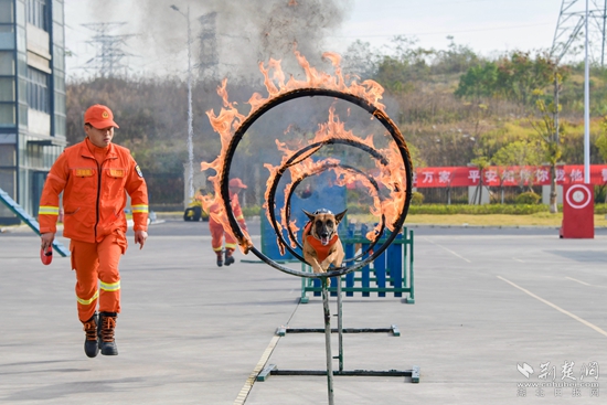樓層綜合滅火演練前,現(xiàn)場(chǎng)先后開(kāi)展了搜救犬綜合搜救操、繩索救援上升與下降操、綜合滅火救人操等科目。尤其是搜救犬互動(dòng)表演,讓人驚嘆不已?!坝行覅⒓舆@次活動(dòng),還能‘?dāng)]’到搜救犬,近距離觀看到它們?nèi)绾斡?xùn)練、搜救,我很激動(dòng)?!焙睅煼洞髮W(xué)文理學(xué)院消防志愿者王晨睿說(shuō)。