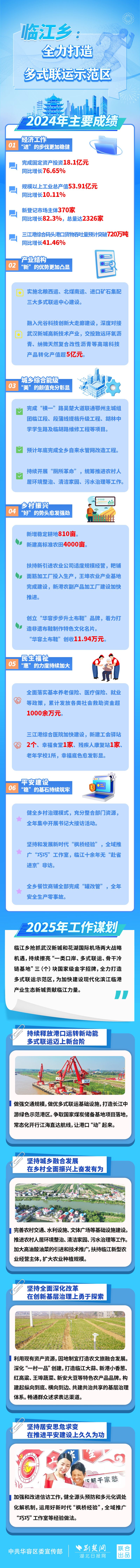 2024年,臨江鄉(xiāng)圍繞打造多式聯(lián)運示范區(qū)發(fā)展目標,全年各項目標任務取得新成效。2025年,臨江鄉(xiāng)如何全力打造多式聯(lián)運示范區(qū)?荊楚網(wǎng)(湖北日報網(wǎng))帶您一圖速覽。