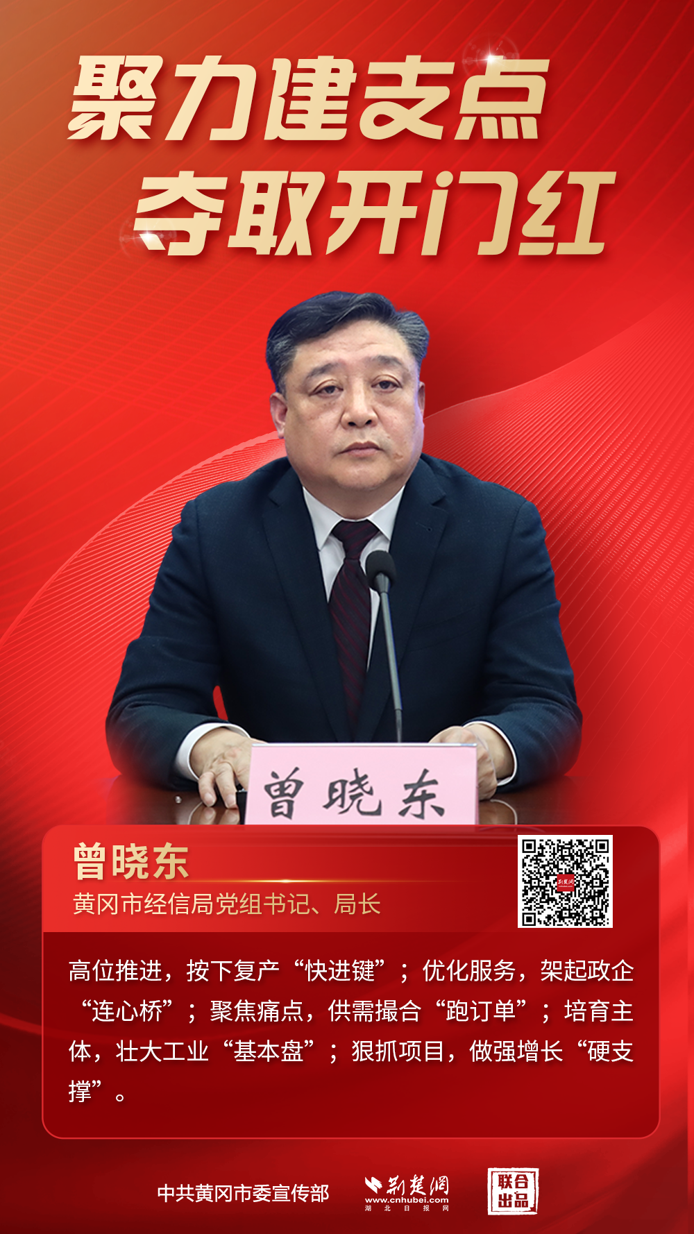 3月13日,黃岡市“聚力建支點(diǎn)·奪取開門紅”縣市長(zhǎng)(局長(zhǎng))話經(jīng)濟(jì)首場(chǎng)新聞發(fā)布會(huì)舉行。會(huì)上,黃岡市政府、市發(fā)改委、市經(jīng)信局、市商務(wù)局、市文旅局等相關(guān)負(fù)責(zé)人介紹全市推動(dòng)一季度經(jīng)濟(jì)“開門紅”的具體舉措和初步成效,并回應(yīng)社會(huì)關(guān)切。