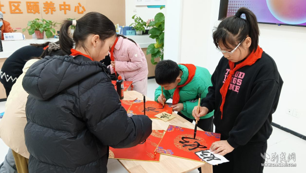 社區(qū)黨委充分發(fā)揮核心引領(lǐng)作用,積極統(tǒng)籌資源、搭建共建平臺(tái)?;顒?dòng)現(xiàn)場(chǎng)洋溢著溫馨祥和的節(jié)日氛圍。未來實(shí)驗(yàn)小學(xué)的孩子們帶來精心編排的文藝節(jié)目,充滿朝氣的歌曲、舞蹈與詩(shī)朗誦為頤養(yǎng)中心注入了青春活力,贏得老人們陣陣掌聲。學(xué)生志愿者還與武昌區(qū)人大代表、未來實(shí)驗(yàn)小學(xué)校長(zhǎng)鄧徐念一起揮毫潑墨,書寫“?!弊峙c新春寄語,在筆墨間傳遞對(duì)長(zhǎng)者最真摯的祝福。