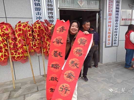 “寶馬馱金行富路,春風(fēng)送瑞啟新程”“平安喜樂(lè)常相伴,福壽安康永相隨”……一副副寓意吉祥的春聯(lián)、一個(gè)個(gè)飽滿厚重的“?!弊周S然紙上,傳遞著對(duì)美好生活的向往與新春誠(chéng)摯的祝愿。