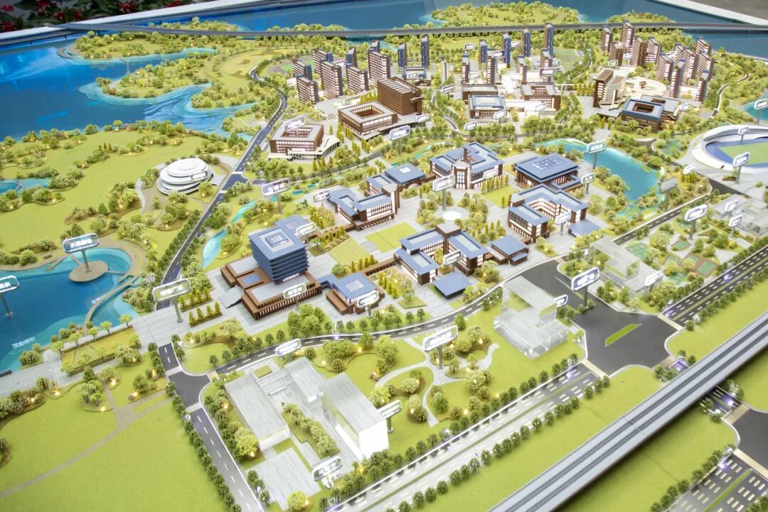走進(jìn)校區(qū)展示中心,一座巨型沙盤在燈光映照下清晰勾勒出盤龍城校區(qū)的全貌。校區(qū)西臨府河濕地南接航城大道,北倚任凱湖畔,三面環(huán)湖的優(yōu)越區(qū)位一目了然。從沙盤上可以看到,教學(xué)樓、實(shí)驗(yàn)樓、圖書館、宿舍等建筑組團(tuán)錯(cuò)落有致,建筑群沿湖畔蜿蜒舒展,與自然水體有機(jī)交融。