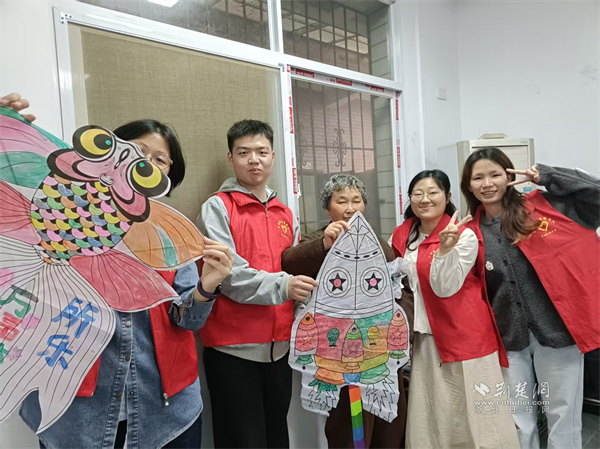 青年志愿者與老年人共同制作風箏。 通訊員供圖