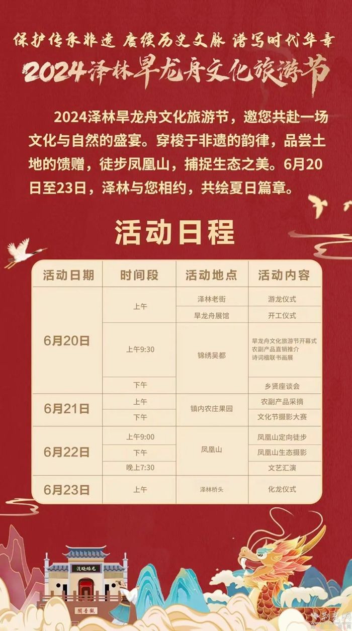 為了傳承這一國(guó)家級(jí)非遺,助推“澤林旱龍舟文化旅游品牌”的建設(shè),今年已是澤林鎮(zhèn)舉辦“澤林旱龍舟文化旅游節(jié)”的第四個(gè)年頭。澤林鎮(zhèn)始終堅(jiān)持進(jìn)一步深挖文化魅力,堅(jiān)定走好“以商養(yǎng)文、以文促商、文商互益”的文商融合發(fā)展新路子。