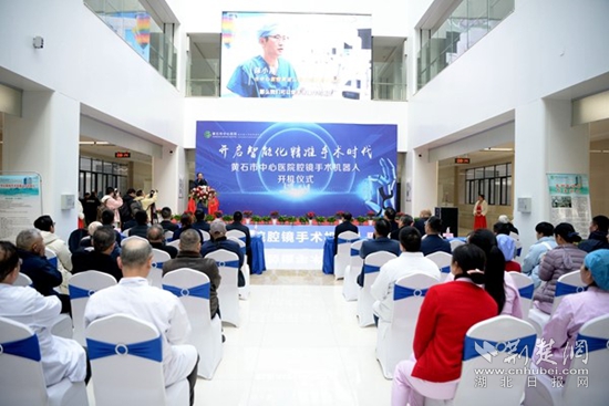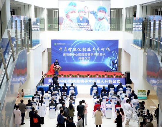 黃石市衛(wèi)生健康委主任嚴定方在開機儀式上講話,他說,今天滿懷喜悅與期待共同見證黃石市首臺腔鏡手術(shù)機器人開機,向黃石市中心醫(yī)院正式啟用腔鏡手術(shù)機器人表示熱烈祝賀,這標志著黃石市在醫(yī)療技術(shù)創(chuàng)新領(lǐng)域邁出了堅實而重要的一步,也為提升區(qū)域醫(yī)療服務(wù)水平注入了新的強大動力。