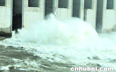 昨日,三峽大壩上游水位已達(dá)89.36米,下游水位66.42米。晚6時,大壩泄洪閘旁,波濤洶涌;而大壩上游,水波不興,江水如鏡。 楚天都市報記者陳建剛楊峰洲攝