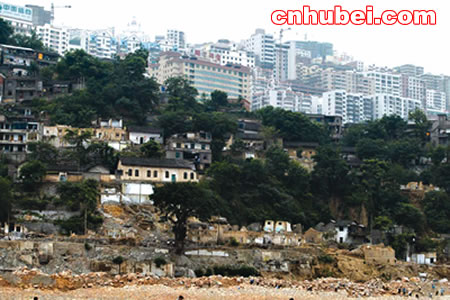 截斷巫山云雨,高峽出平湖。再過兩天,承載著億萬中國人夢想的三峽大壩135米蓄水就將開始,長江三峽一些人們熟悉的景觀將從此沉睡在煙波浩淼的高峽平湖之中。(左圖—)豐都老城廢墟上,一名婦女正逗孩子玩。遠(yuǎn)處是高樓林立的新縣城。