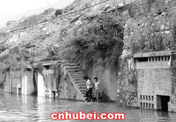 依斗門碼頭110米水位下的房子已沒入江中一半。