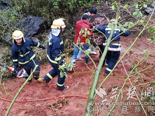 圖為消防員救出被困人員現(xiàn)場。 通訊員 朱濤攝